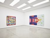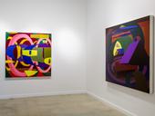 Held’s early pigment paintings, begun in the 1950s, were built up with raw pigment and thick impasto and featured overlaid colourful geometric shapes to create a sense of jostling internal energy. Through their uneven accumulations of paint and combination of linear detail with an overall visual distortion, various formal and structural effects could be played out, affirming his belief in painting’s physicality. The artist then switched to acrylic paint, allowing him to achieve a harder-edged clarity. The ‘Alphabet Series’ from the early to mid-1960s, for example, use monumental graphic letters (such as The Big A (1962) and The Big N (1965)), in which the contours of the two-dimensional letters appear to be barely contained within the limits of the canvas.