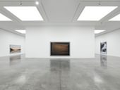 Since the 1990s, Gursky has concentrated on sites of commerce and tourism, making work that draws attention to a burgeoning high-tech industry and ever expanding global markets. His subject matter ranges from the vast, anonymous architecture of modern-day hotel lobbies, apartment buildings and warehouses to stock exchanges and parliaments in places as disparate as Shanghai, Brasília, Los Angeles and Hong Kong. Although his work adopts the scale and composition of history painting, specifically landscape, his photographs are often derived from inauspicious sources: a black and white photograph from a newspaper, for example, whose subject is researched at length before a photograph is finally shot and digitally altered before printing.