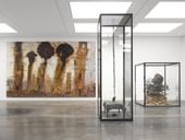 Kiefer's immersive studio environments are an essential component of this methodology, functioning as both laboratories and reserves that allow for research, accumulation and material transformation. Often depicted in his paintings, his studios include his current location: a former department store warehouse in Croissy, on the edge of Paris; a schoolhouse and old brick factory in Buchen, south-west Germany; and a site of almost 100 acres in Barjac, near Avignon in southern France, where he was based for many years after he first moved to France. This last site (open to the public since summer 2022) was gradually developed into what is now known as La Ribaute: a gesamtkunstwerk that comprises 52 buildings, an amphitheatre and more than 70 major works in situ, connected by above-ground paths and underground passages.