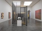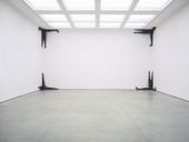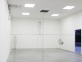 For Gormley the exhibition is always a testing ground, the visitor the true subject of his work. Key to its effect is its active relationship to surrounding space and a heightened articulation of the viewer’s physical encounter with the widest possibilities of sculpture. Since Room (1980), an enclosure the size of a standard room made from unpeeled layers of clothing, he has sought to make proprioceptive environments that challenge and catalyse the space-time experience of the viewer. Feeling Material XIII (2004), for example, spirals a steel line out from a body zone towards its surrounding environment, entangling visitors in a seemingly unending web of energy. This line then becomes entirely abstract in Clearing I (2004) and Turn (2023), three-dimensional, high-energy ‘drawings’, in aluminium and bamboo respectively, through which visitors are encouraged to duck and dive. This investigation into environments that foreground the bodily experience of the viewer over the materialisation of a singular body continues in installations such as Breathing Room I (2006) and Blind Light (2007), the latter described by the artist as a space in which ‘you become the subject of the work, a figure immersed in an endless ground’. This ambition returns in one of Gormley’s most radical sculptural propositions, Horizon Field Hamburg (2012), a suspended platform floating nearly eight metres off the ground. This vast, black, reflective surface offers a participatory space where visitors can reconnect with walking, feeling, hearing and seeing – a literal sounding board for their own subjective experiences. Human interaction also animates Lost Horizon II (2017) and Matrix III (2019), the former a forest of bungee cords that both resists and remembers a body’s journey through its taut, vibrating field of vertical ropes, and the latter an expansive, hovering, axial cloud that confounds the eye, producing a reversed sense of vertigo.