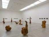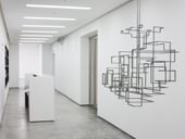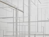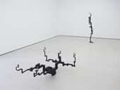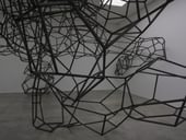 Constantly searching for new ways to evoke human experience led Gormley to dematerialise or disarticulate the body’s anatomical totality into various aggregate or organic structures, from the Weaire-Phelan bubble matrix to the Cartesian coordinates to crystal stereometry. The ‘Drift Works’, for example, employ stainless steel bar in dense, cloud-like suspensions that articulate a body free-falling through space, the ‘Polyhedra Works’ reconcile the body with crystalline systems of mineral aggregation found in rock and the ‘Expansion Works’ renegotiate the body’s boundary by pushing beyond the limits of the skin to create large organic forms that recall single-celled organisms, fruits or vegetables. In recent years, Gormley’s work has become increasingly fluid and open, tending towards loops that map body-space, as in his ‘Strapworks’, sometimes breaking free of the skin’s bounding condition to question where the body begins and ends.