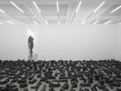 Some of Gormley’s most well-known works inhabit public space and become part of the activity of daily life. The permanent installation Another Place (1997) features 100 cast iron body-forms sited above and below the tide line at Crosby Beach in Merseyside, facing outwards towards the sea. Perhaps his most famous work, Angel of the North (1998), near Gateshead, is a monumental steel sculpture rising 20 metres above the ground and spanning 54 metres wide, the result of five years of collaboration using historic industrial methods inspired by the region’s history of shipbuilding. Situated adjacent to the major A1 motorway on the site of a former colliery, it has become a national landmark, a celebration of collectivity that invokes the great industrial traditions of the UK and a beacon of hope for the future. Collective labour also underpins Gormley’s series of ‘Field’ installations that consist of a multitude of hand-sized clay figures amassed to occupy an entire room. A collaborative project produced with different communities on four continents, the largest is Asian Field (2003) numbering approximately 210,000 figures made with 350 people of all ages in the village of Xiangshan, north-east of Guangzhou, China.