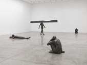 In the 1990s, these hollow body-cases became solid, transforming the space of the body into mass to effect a complete displacement of space itself. Around this time, Gormley produced his now iconic series of cast iron body-forms, including the major installation Critical Mass II (1995) in which 60 body-forms articulate 12 different physical states. Industrially made, Gormley considers these bodies ‘fossils’ and ‘mineral masses’ that record lived moments in time. First installed in a disused tram station in Vienna as an anti-monument to victims of the 20th century, Critical Mass II was subsequently installed in the courtyard of London’s Royal Academy of Arts, where the presence of its multiple prone, upturned or suspended figures implied profound questions about the progress of intellectual enlightenment. It has since been seen in different formations and a variety of contexts, from the Forte di Belvedere in Florence to the Musée Rodin in Paris.