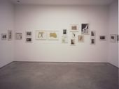 Marclay began his investigations into sound and art through performances with turntables in 1979, while he was still a student. His early work included a series of ‘Recycled Records’ (1980−86), fragmented and reassembled vinyl records that became hybrid objects which could be played, replete with abrupt leaps in tone and sound. For his ‘Body Mix’ series (1991−92), he stitched album covers together to create works that are strange phantasms of music and culture – such as Deutsche Grammaphon conductors with the slender legs of Tina Turner – that bring to mind Surrealist ‘Exquisite Corpses’. This transformation of musical instruments or objects into visual puns is an essential component of Marclay’s work. Virtuoso (1999), for instance, features an accordion with its bellows elongated to more than seven metres. This playful approach to sound and image is also a feature of his ‘Snapshots’, an on going series of informal photographs that depict elements of sound and onomatopoeia discovered in everyday situations.