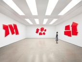Knoebel’s art is resolutely abstract, and takes Kazimir Malevich’s aesthetic notion of ‘pure perception’ as its point of departure. As the artist states, ‘When I am asked about what I think when I look at a painting, I can only answer that I don’t think at all; I look at it and can only take in the beauty, and I don’t want to see it in relation to anything else. Only what I see, simply because it has its own validity.’ Knoebel’s minimal compositions rely on a strict, pared down vocabulary of forms combined with a subtle but commanding use of colour, all of which serves to expose the physical possibilities inherent in the most basic of materials, such as plywood, aluminium and fibreboard. This is best exemplified by the major installation Raum 19 (1968), conceived while Knoebel was still a student under Joseph Beuys, and now part of Dia Beacon’s permanent collection. Borrowing its title from the number of his studio at the Kunstakademie, Raum 19 consists of 184 wood and fibreboard forms such as frames or stretchers, cylinders, cubes and rectangles – a mutable ensemble which can be reconfigured in any number of ways in accordance with the artist’s impulses. While Raum 19 is an expressive constellation that appears to autobiographically refer to an art student’s raw material, the installation is itself an instance of reduction, a formal exercise of peeling back the work of art to its most basic component parts.