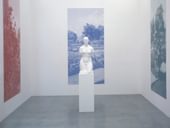 Katharina Fritsch’s iconic and singular sculpture plays on the tension between reality and apparition, between the familiar and the surreal or uncanny. Her iconic objects, images, installations and sound works seem able to imprint themselves on the mind, as if they were gestalts or things we have seen and experienced before. Hearts, crosses, skulls, bottles and Madonnas are used to play on the fantasies and images that we share, but they are transformed through colour and material into things open and mysterious: latent notions transfigured into primal forms. Fritsch often recasts characters and elements from her own, private world. In works such as 'Tischgesellschaft' (Company at Table), (1988), subjects – usually male – are transformed through colour and material into frozen, hyperreal beings that seem without otherworldly apparitions.
