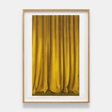 This lithograph print by Louise Giovanelli continues the artist’s visualisation of curtains and drapes as primary subject matter. In Prairie (2024), a close portrait view partially abstracts lavish hanging golden curtains which gather on the floor. Unable to see beyond the partition and with context ambiguous, Giovanelli’s curtains invite imaginative and associative thinking across its undulant surface.